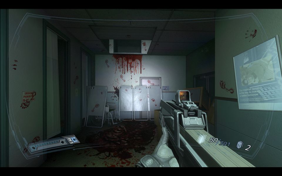 本作は戦闘より、どちらかというと謎解きに比重が置かれており、屋内をくまなく捜索して資料を集めたり、一見通ることができないような通路を探し出す必要がある。どちらかというとMetroシリーズ的なアドベンチャー風の色合いが強い。