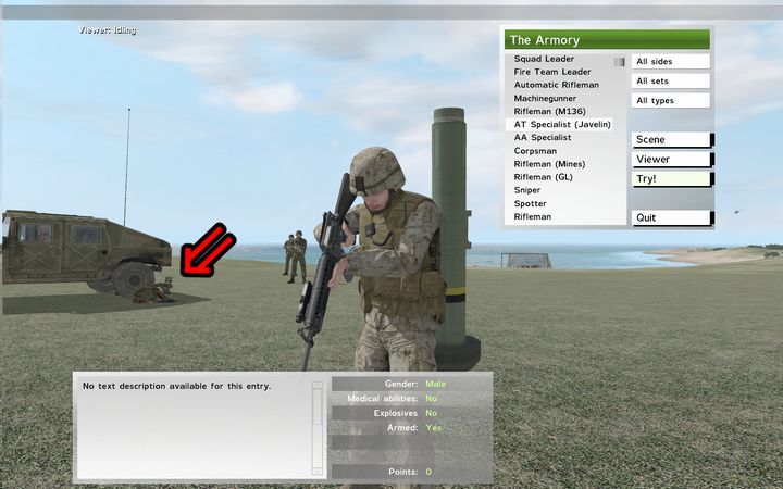 ArmAの時点だと、まだ轢殺は殺害カウントされないのね。作戦中に誤って部下を轢いてしまったときに敵対されずCasualityにもカウントされてなくて吹いた。だって突然、道路のど真ん中に飛び出してきたんだもの…