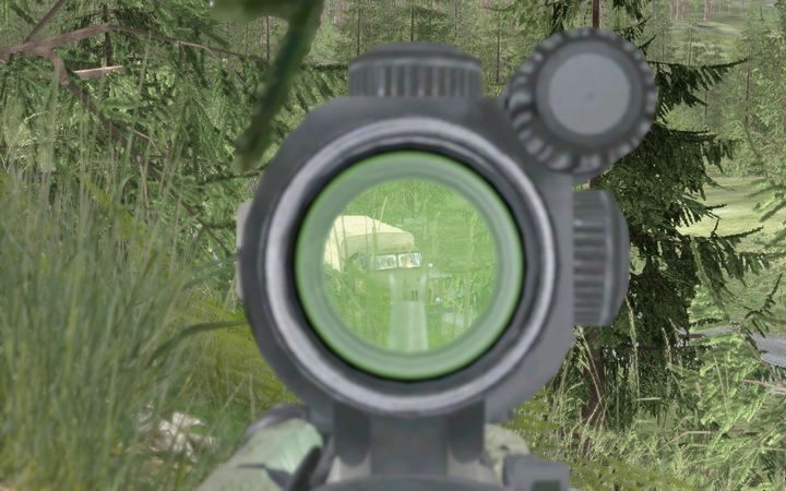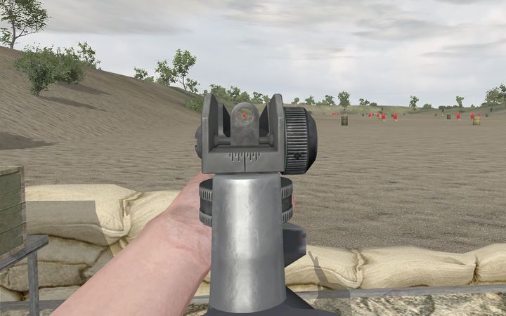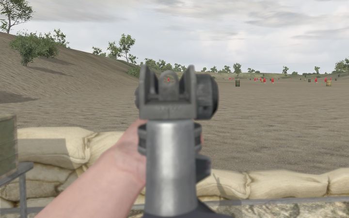 ArmAではこの「近景にBlurがかかる」という点が非常にクセモノでして、たとえばアイアンサイトを用いて射撃する場合、照準器にかなり強めのBlurがかかってしまい、狙いがつけ難くなってしまうのです。そしてOFP/ArmAでは照準器を使用しないと正確な射撃が期待できません。