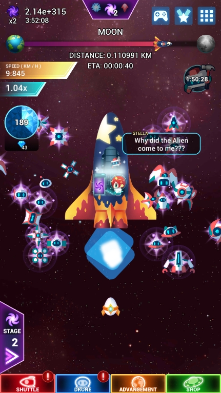 本作は起動していないときでもゲームが進行し、そのときにドローンが収集したリソースをInactive Rewordとしてゲーム中に受け取ることができます(ちなみに受け取るときに広告動画を併せて観ると+50%のボーナスがつきます)。