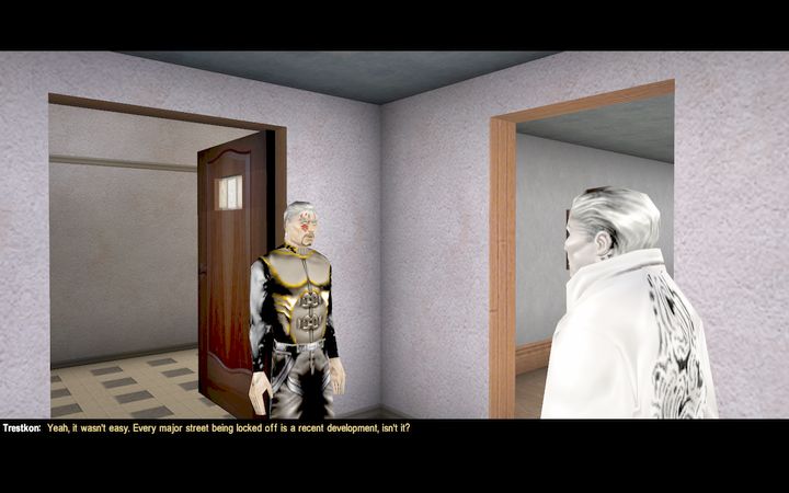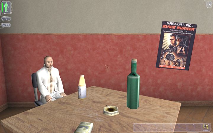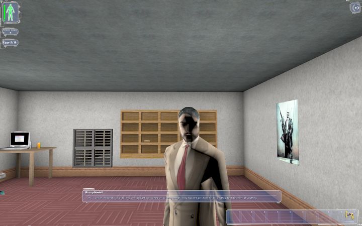 ゲームはPhasmatisのアパートからはじまります。Phasmatisはアパートの4階にいるのでエレベータで移動します(受付に話しかけると「警備員にちょっかい出すなよ。撃たれるぞ」と注意されます)。ちなみに2階と3階には何もないので、行くだけ時間の無駄です。