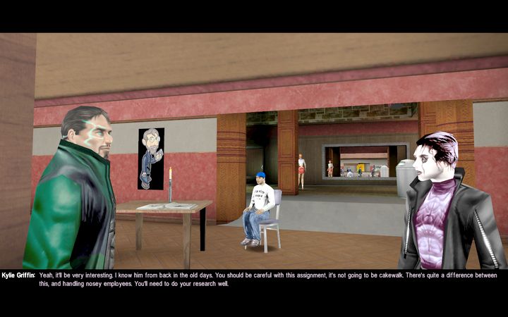 店内に入るとZeroとKylieが会話している場面に出くわします。Zero PresenceはScara B. Kingの右腕のような男です。一方のKylie GriffinはAlpha Operator同様元PDXCIS職員で、さらにTrestkonの元恋人です。現在はWorldCorpの工作員としてZeroと行動をともにしているため、Trestkonとの会話は若干気まずいものに。