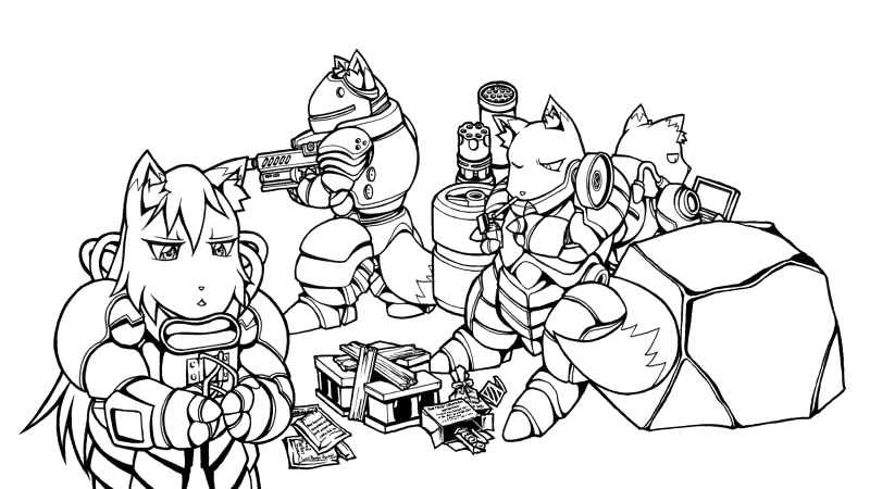 戦場で戦う兵士に安寧はないのである。歩哨に立っている四匹目はゲーム未登場で、三匹の後輩(第二世代重装狐)という設定です。こっちもそのうち投稿したいとは思ってるんですが、まずは新しく投稿した眼鏡ーズの換毛が先であろうか。