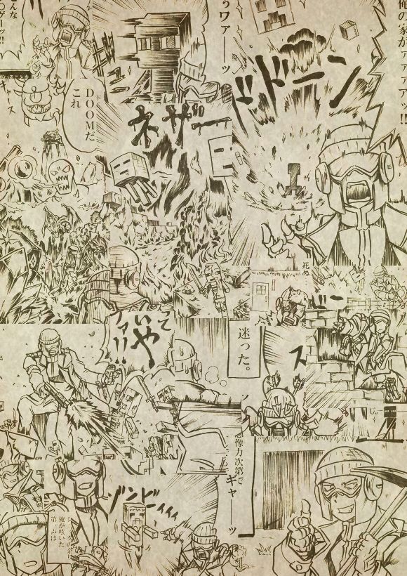 このところずっとElona plusやってた、ずっとElona plusやってた、と書いてましたが、じつはそんなにずっとゲームばかりやってたわけでもなくて、サークル誌向けにMinecraftの紹介漫画を描いてました(以前チラッと触れたような気が)。サークル誌といっても冬コミとかそういうのは関係ないですが。極々身内向けのシロモノでございます。
