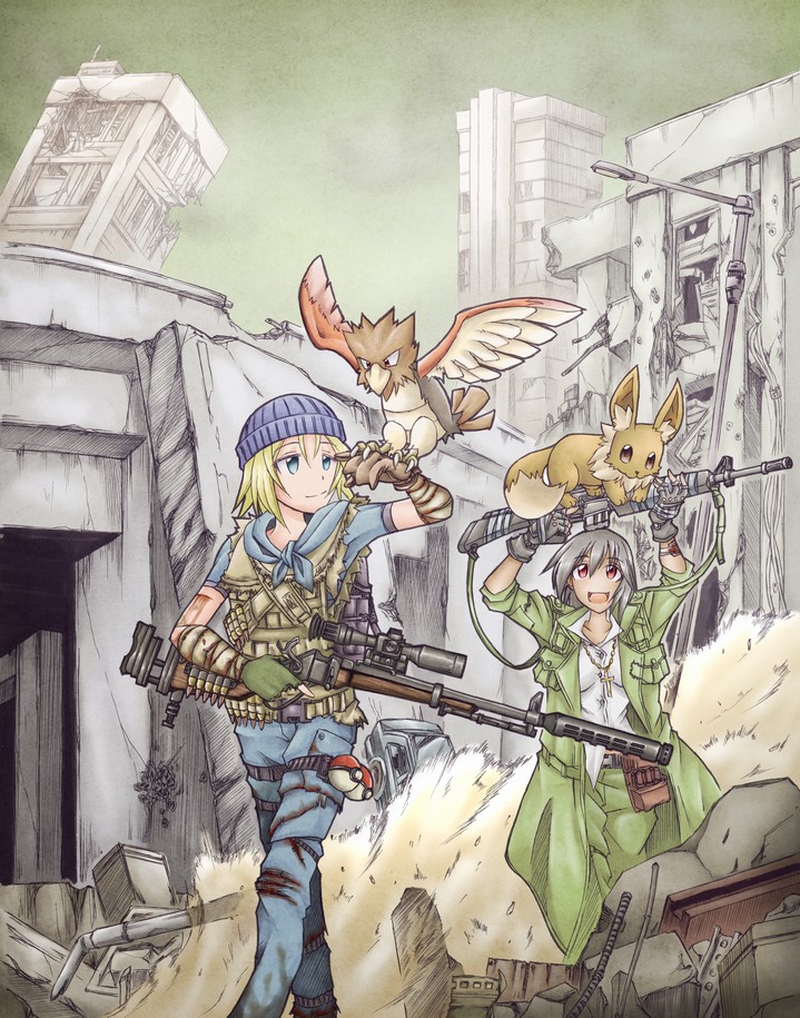 上のイラストはツイッターでチラッと触れた、「ポケモンでポストアポカリプス的なオープンワールドものがあったらええのぉ~」的な、誰にも褒められない厨二妄想を形にしたものです。新作のピカチュウ&イーブイがなんかポケモンを連れて歩けるっていうのを聞いて、そこから着想を得たものなんですけどね。