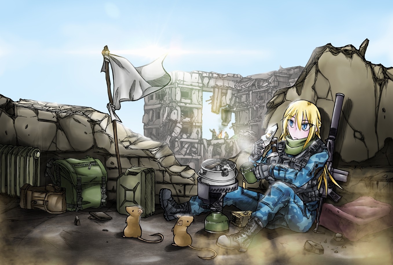 個人的な感情や民族的背景がある場合はまだしもだが、軍人として、一兵士として戦争に参加しているに過ぎない"彼女"は、一時休戦を意味する白旗を掲げ、おおっぴらにストーブを焚いてみせることで戦意がないことをアピールすると、崩れた石壁の影に身を隠した。