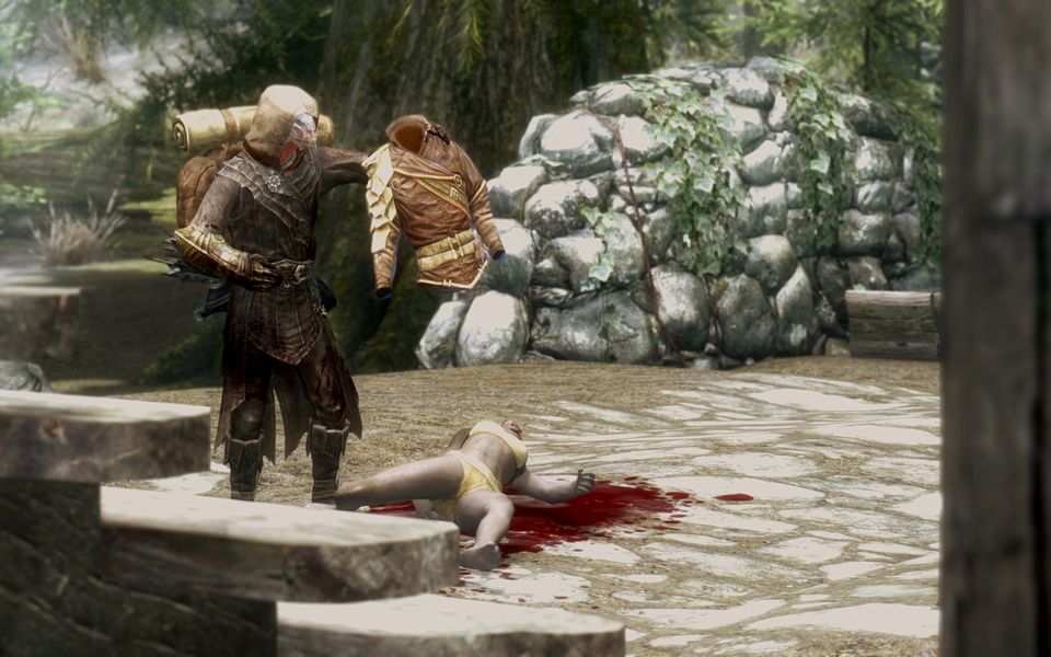 労働後の小休憩。そういえばSkyrimには川の水を飲むって選択肢はないんだっけ?