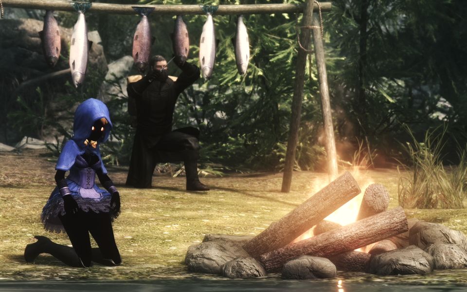 キャンプ設営は写真撮影の小道具として欲しかったので、なるべく面倒な機能がついてないやつが良かった。一度クリアしたらハードコア仕様のバランス調整入れるのも悪くないかもしれんが、Skyrimの場合はメリ姉に高空に持ち上げられてそのまま凍死とかあるらしいからなぁ。