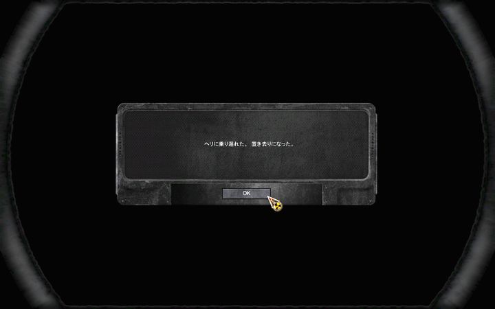 それもこれも死人を出さず生存者をゾーンの外に送り出したい一心だったわけであるが、途中でどういうわけか仲間がまったく動かなくなり、結局全滅した(どうやら離れすぎると強制的に死亡するらしい)挙句に救助ヘリに取り残される。