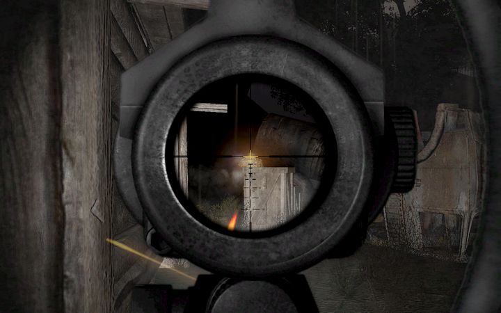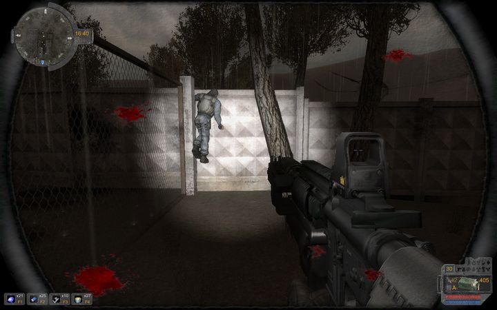 SVDKで建物周辺を巡回する強化外骨格兵を狙撃し、Zuluから譲り受けたPKMを手に突入する。