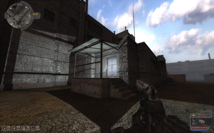 それとは別に、なんとメモリ不足で落ちたのが一回。セメント工場に出現したPseudogiant2体が地震を発生させたと同時に落ちたのだが、ロード後にこいつらが狭い階段をスタックせずにスムーズに上っていって応戦するスタルカーを踏み潰したのを見たときは変な笑いが出た。上の画像がそれ。