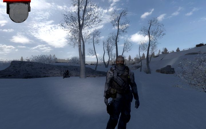 しかしこのMOD、プレイ前は「たんに地面を白くしただけじゃないだろうな」などと思っていたのですが、実際は雪の質感なんかがちゃんと表現されていて凄いです、足音も雪を踏みしめたときの独特の音になってたりとか。んでNPCやミュータントが立てる足音がけっこうデカイので、レーダーが役に立たないぶん聴覚を研ぎ澄ませて索敵するスタイルが求められます。狙ってやってるんだとしたら凄いぞコレ。