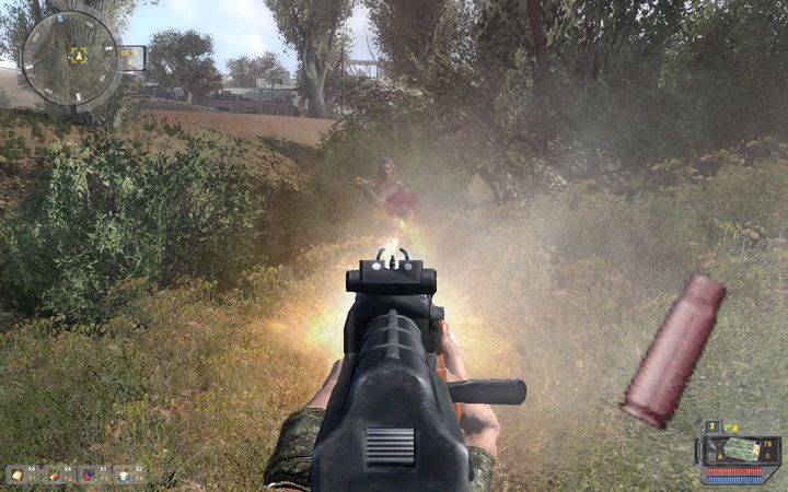 ふたたびMedvedevに話しかけると、次はいよいよ実戦だ。Village(新人キャンプと言ったほうがわかりやすいか?)にいるBanditを殲滅することになる。何人かのStalkerたちが援護してくれるので、それらを利用しつつ多角的に攻めよう。