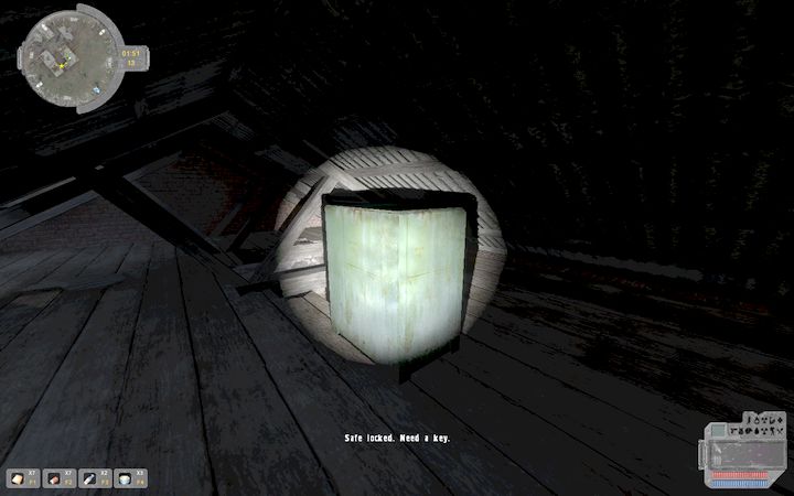 Flashdriveは北西の建物の屋根裏に設置されている金庫に保管されているが、調べると鍵がかかっていることが判明するので、鍵を探しに行く。