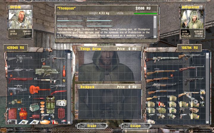 基地を奪還したあたりで、TraderのSkinflintと修理屋のScrewを利用できるようになる。Skinflintはアーティファクトと引き換えに貴重なアイテムを交換してくれるが、要求はどれもかなり厳しいものなので覚悟が必要だ。
