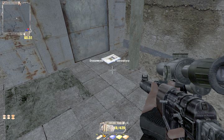まずはSviblovの依頼を完遂しよう。目的のアイテムDocumentsFromTheLaboratoryはX-10の最奥にある(地面に落ちている。特に隠されているわけではない)。これを取得すると同時にMarcenaryが大量にスポーンするので注意が必要だ(Strelokのすぐ近くにも1体スポーンする)。