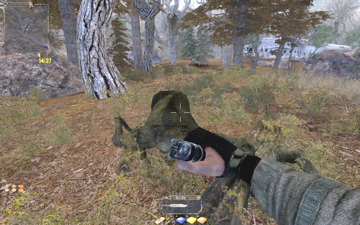死骸を部屋の中に入れるとタスクが更新され、その後Sviclovと会話しタスク終了。次のタスクは裏切り者の始末だ。PDAにマーキングされた場所(森の中)に行き、しばらく待機。すると裏切り者がノコノコと姿を現すので、タスクが更新され敵対関係になったら殺害。