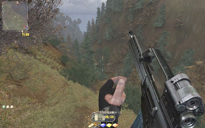 あちこちを探索していると、色々なアイテムを発見することができる。特に山頂の岩場にあるG36はかなり高性能なアサルトライフルなので、是非見つけておきたいところ。