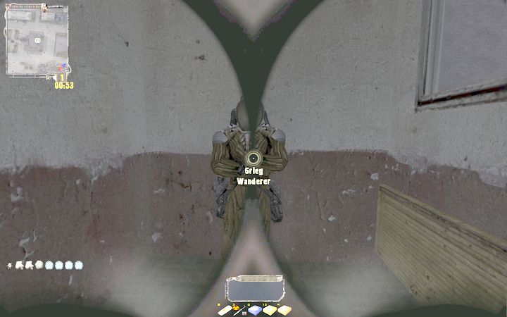 北西のアパートに行くと、そこにはZombiefiedStalkerではなく、たんなるZombieが。まさか閉鎖空間でZombieと戦闘になるとは思わなかったので、かなり新鮮な感覚だ。もっとも閉鎖空間だけに、倒すとかなりの確率で壁に埋まってガクガクするのは鬱陶しいが…