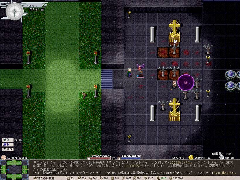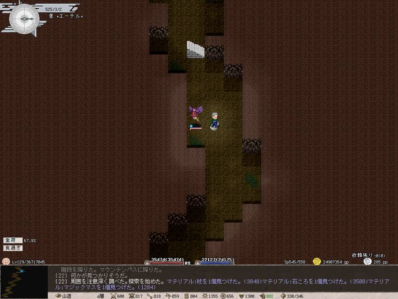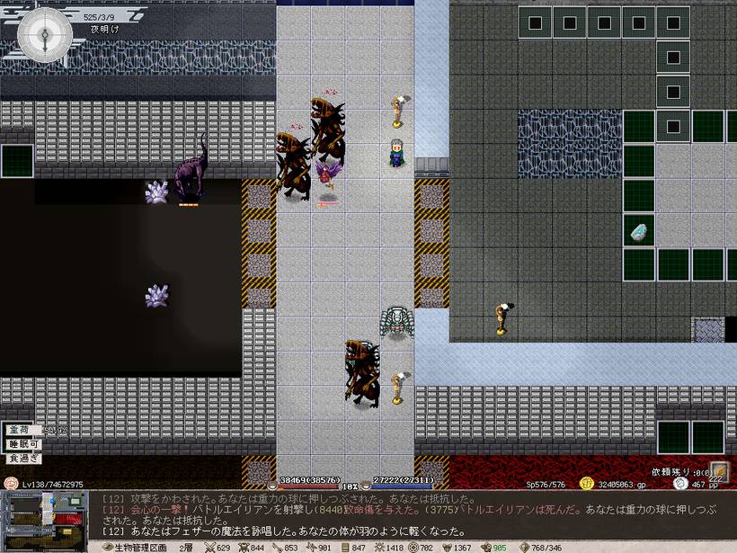 ラーナ(山道)からミラル・ガロクへ向かう道中、モノは試しと深度407階相当の《覚醒》ネフィアに潜ったところ、とんでもない苦戦を強いられました。Overdoseでこんだけ成長したPCが常時全力で戦うことを強いられる環境です。もちろんペットのモー・ショボーの協力も不可欠。一切の舐めプが通用しません。クワガタイラントがヤバいくらい強かった…
