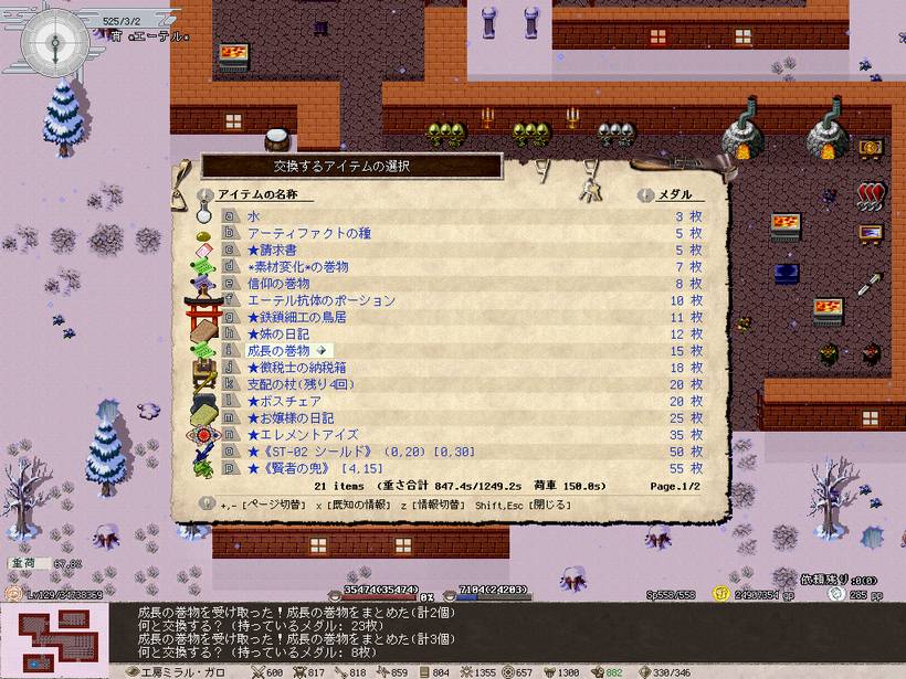 主な目的は宝の地図から回収した★小さなメダルの交換ですね。いままではガロクの槌の交換に使っていたのですが、ほぼほぼ装備が最終形に纏まった現在では専ら成長の巻物との交換に使っています。バリバリPCを強化するZE!