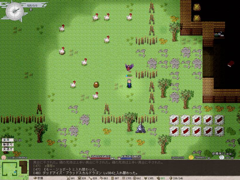 さらに南下し、ティリス北側関所の隣に配置してある鶏牧場の様子を見に行きます。