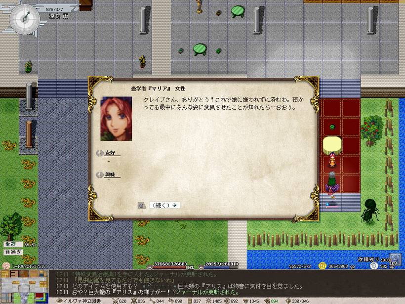 カッチョ良いアリを普通の?アリに戻し、報酬ゲット。その中には本家版含むいままでのElona人生の間でもついぞ見かけることのなかった下落ポーションが三つも。