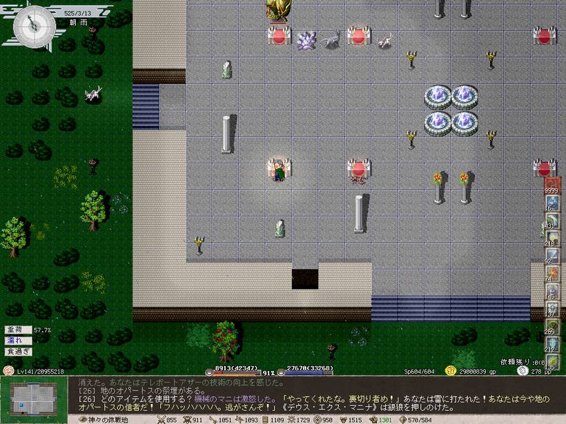 あのときからかなり鍛えてあるとはいえ、苦労すれば倒せるというより死なない努力をするのに必死程度ではやはり相手にならない。真の神殺しの称号はお預けか…やはり今回のプレイでの最終目的は打倒ラスボスマニの中の神様ということになりそうだ。