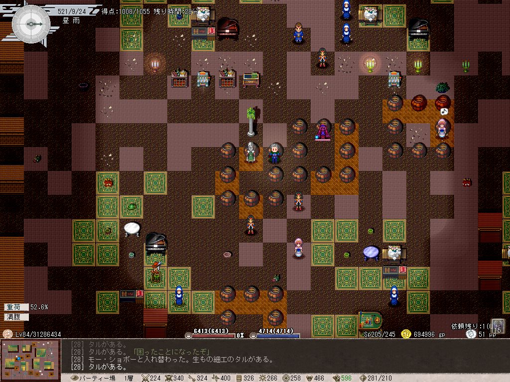 これはPCとペット両方に言えることなんだけど、何も考えずに食べ物を未鑑定のまま食べまくっていたので体重がヤバイことになっています。基本的に呪われた食べ物って体重が下がる以外にデメリットがないので(稀に拒食症に陥る弊害があるとはいえ)、構わず食ってたらこんなことになってしまった。