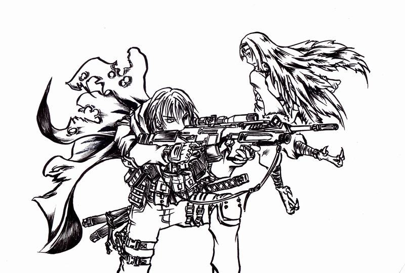 PCの服装はいちおうゲーム中の装備を反映…したつもり。ガロクの画像差し替え機能を使った狙撃銃は以前にも書いた通りH&K社のSL8がモデルになっています。ただ側面レールとかAG-36、フラッシュハイダーあたりはアレンジ入ってますけど(元の銃には存在しない&装着できない)。まあ、いちおうカスタムモデルという設定なので。