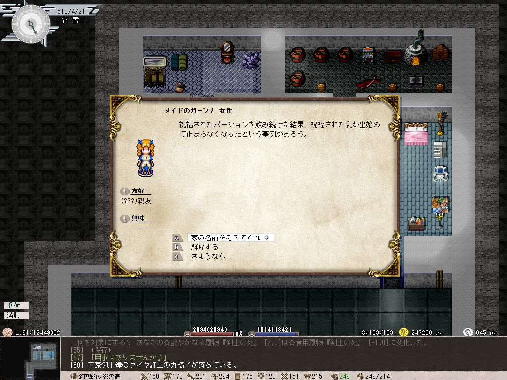 なんとなく違和感があったのでちょっと調べてみたのだが、どうもElonaのメイド(というか使用人全般)はランダム生成ではなく最初から決まってるっぽいのだよな。ガーンナさんじゅうにさいとかネタにされているあたり。