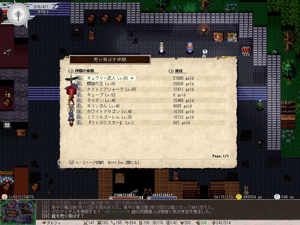 でもって素材変化の巻物を集めるために魔法店巡りをしていたら、支配の呪文書なぞというシロモノを入手してしまったので、現在モンスターを支配しては奴隷商人に売り飛ばすという闇の奴隷商人プレイをやっております。