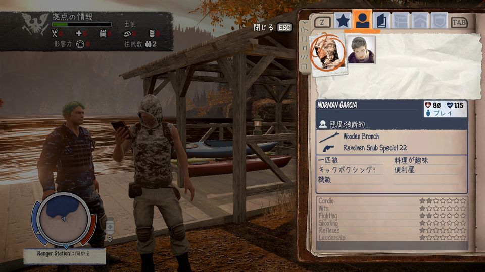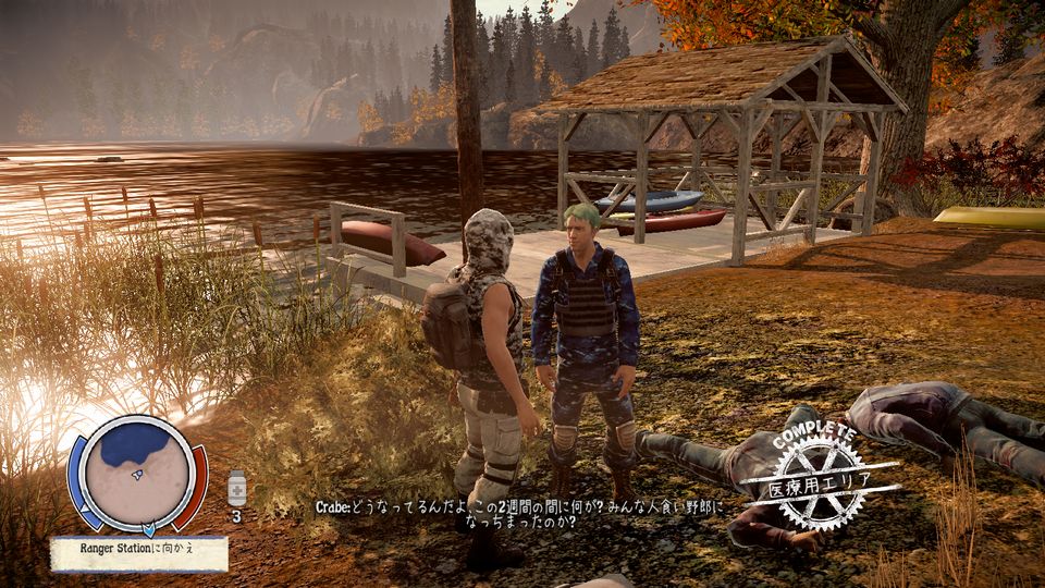 ノーマン:「どうやら俺たちがノンビリ釣りを楽しんでいたあいだに、とんでもないことになっていたようだ。いつからだ?とにかく、レンジャーステーションの安全を確認しなければ」