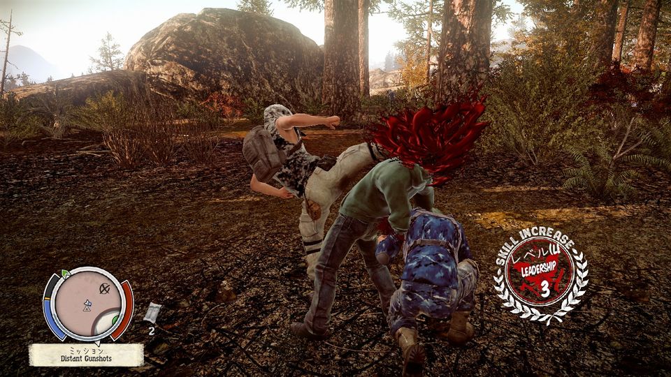 その後、青迷彩男と白迷彩男は協力して他のキャンプ客たちの頭を叩き割った。その行為自体に忌避感や抵抗はないらしく、どうやら彼らはこうした行動に慣れているらしい、ということがそれとなく察せられる。