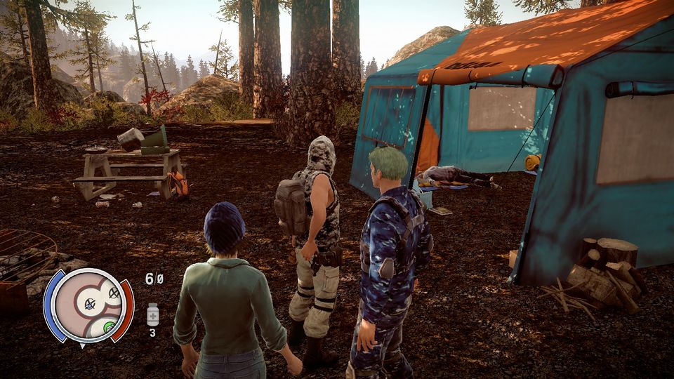 クレイブ:「どっちだっていいさ…ところで、俺たちはキャンプに来てたんだよな?ゾンビ狩りじゃあなく?まったく、なんて休暇だよ!アンタとはアルルコの内戦以来だが、こんなクソ田舎のキャンプに誘われたかと思ったら、とんだトラブルに巻き込まれちまった!」