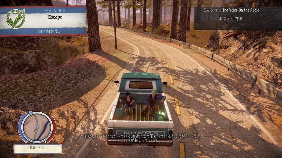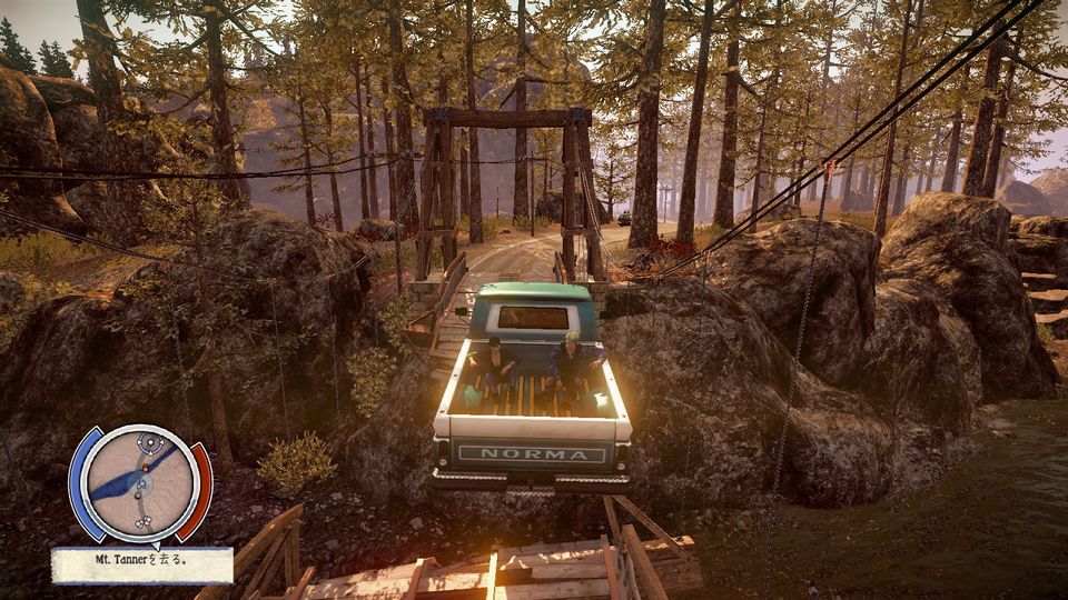 ノーマン:「アサルトウェポンの所持に関する州法や携帯規則をきちんと理解したうえでの発言ならいいんだがな。すぐ近くにレンジャーステーションがある、まずはそこへ向かうべきだろう。状況を確認する必要がある」