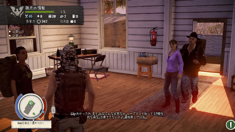 リリー:「だといいけど…それと、ねえ、そこから動物病院へ向かえる?いま、アランとサムを応援に向かわせたわ。人数が多いほうが、ゾンビと戦ったり、より多くの荷物を持ち帰るのに有利でしょ?」