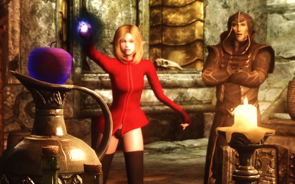 前が開いてるミニのローブとか超エロい!ということで当初は気に入ってたんですが、いざ実際に着用してみると思ってたよりエロくなかったっていうのと、やはりSkyrimの世界で着ているといろいろ違和感がすごくて世界観が台無しになる(もう片方のプライベート服も大概ですが…)ので、たぶんもう着用する機会はないと思います。