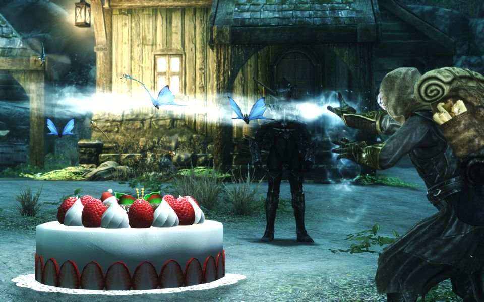 俺はSkyrimのシナリオをそれほど進めていないため、これが後のイベントに使われるのかどうかは判断がつかない。デイドラ関連のイベントで登場しそうな気配があるのだが、しかし関連語句で検索してもこのドッペルゲンガー・ドヴァキンに関する情報がまったく引っかからない以上は、コンソールを使ってキャラを複製しようとしたプレイヤーのために用意されたベセスダのお遊びという気がする。