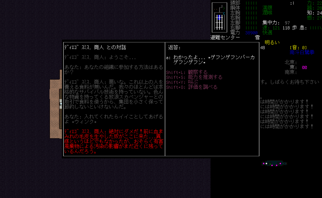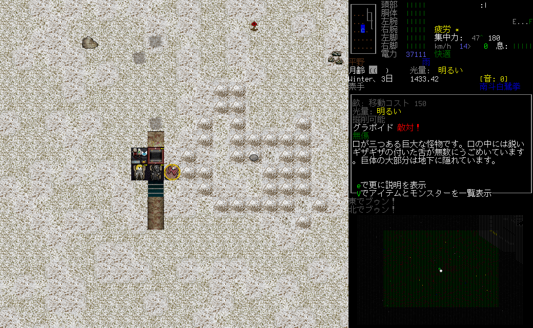 微妙にプレイが滞っている間にも開発版がどんどんバージョンアップしていくCataclysm: DDA、じつは前回の更新以後まったくプレイしていないんですが、そういえばつぶやきったーのほうでイラストを描いていたのを思い出したので、せっかくなのでここに放出したいと思います。