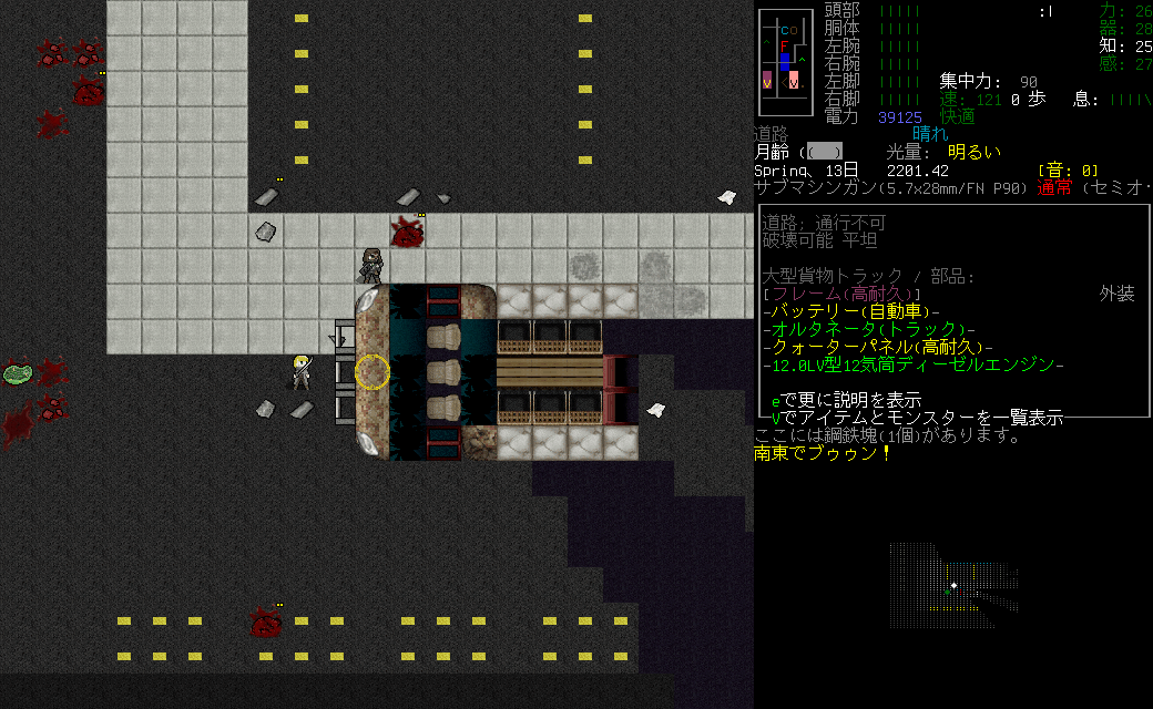 探索の途中で倒した放電ゾンビの死体を解体すると、内蔵工具CBMを発見した。アレッ、そういえば、俺はまだこの超万能CBMを移植していなかったのか?どうりで車輌改造がはかどらなかったわけだ…役に立ちそうなCBMは一通り埋め込んだと思っていたが、とんだ見落としがあったものだ。