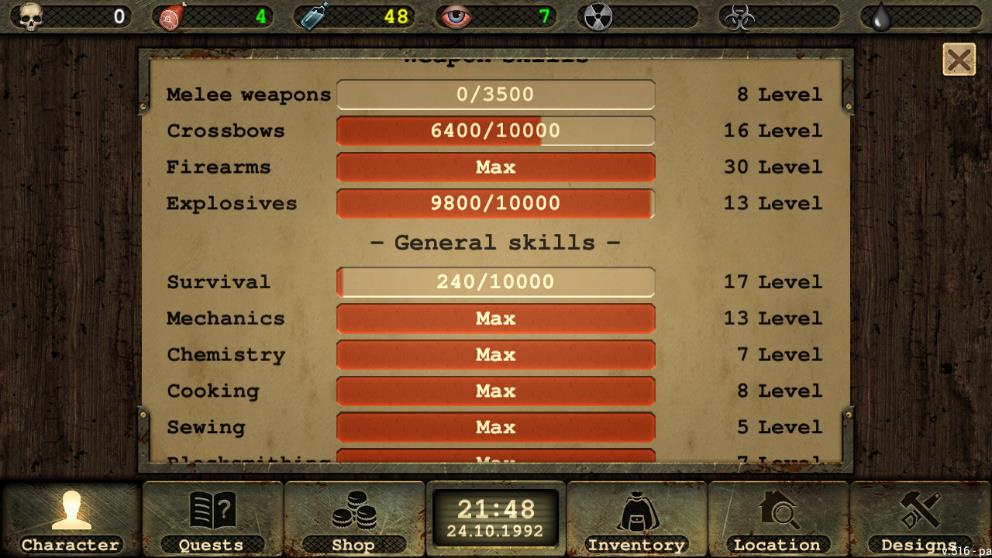 いちおう元ネタとか、本来どういったシロモノなのか興味があったのでついでに調べてみたんですが、どうも誤訳っぽいのもや造語がかなり多いようで、英語はもとより原語のロシア語のほうで検索してもDay R Survivalに関するページしか出てこないので、ちょっと参ってしまいました(わざわざゲームプレイ中に設定原語をロシア語にして単語を調べたんだぜ)。