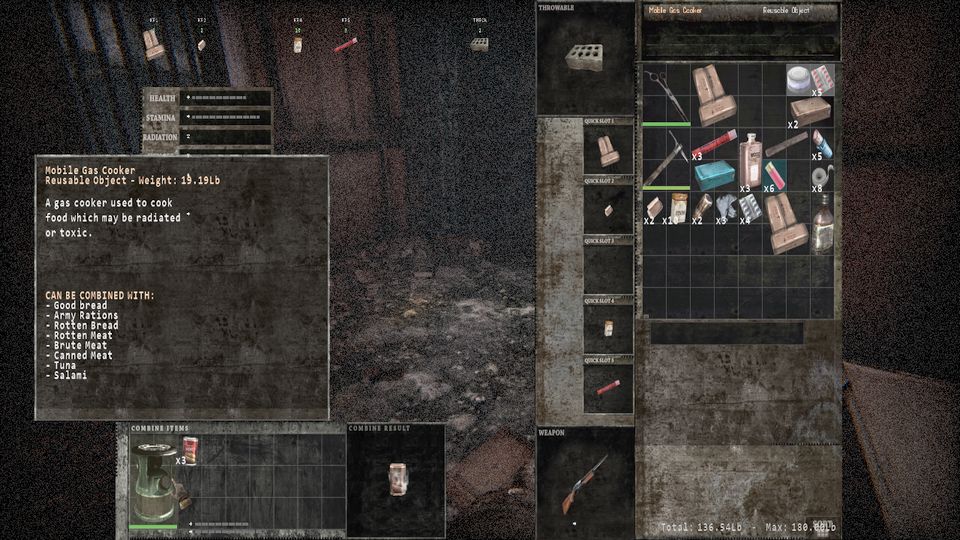 本作の戦闘は銃や弾薬がほとんど手に入らないため近接攻撃が主体となりますが、近接武器の多く(特に戦闘向きのもの)は耐久値が設定されており使いすぎると破損すること、また攻撃にスタミナを消費するため連続攻撃やダッシュしながらの攻撃がご法度な厳しいバランスとなっております。