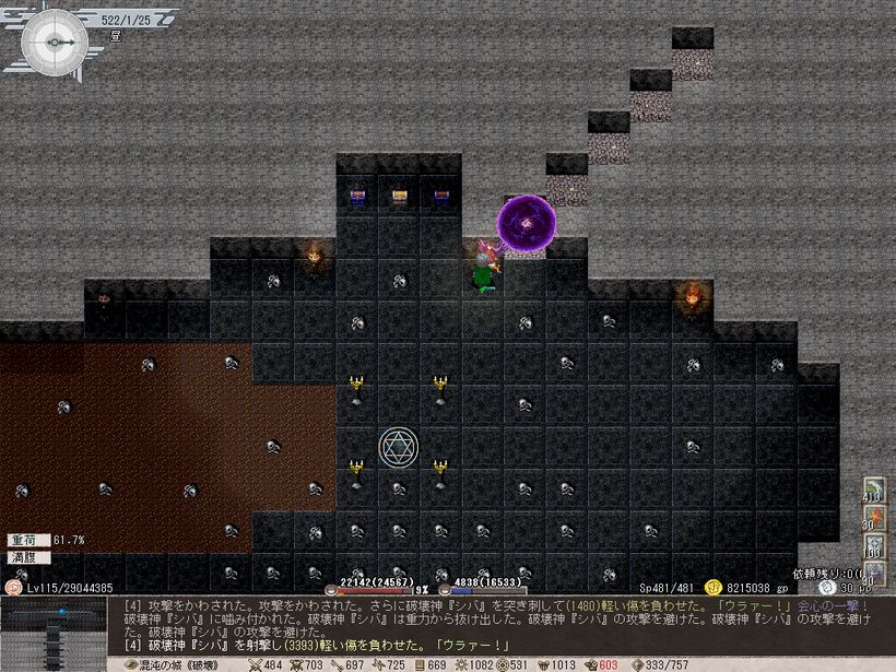 ただ混沌の城《機皇》のイェルスードと、混沌の城《破壊》のシバだけはちょっとヤバかったです。何も考えずに攻撃してたらHPがガンガン削られて瀕死になってました。イェルスードはパイルバンカーが強力なのと、シバは…単純にダメージが高いのか?