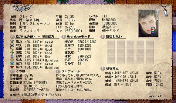 PCは遂に意志が1000を突破し、速度もそれなりに上昇してます。こりゃあ第三部へ行くまえに800突破するかもなあ。