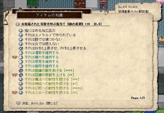 これは12月中にしばしばノイエルを訪れる機会があって(土産物屋の素材槌と宝の地図目当て)、そのときにモイアーさんの店で鬼のようにリロりまくって入手したシロモノです。アレは装飾品の入手に関しては随一の利便性を誇るショップですね。