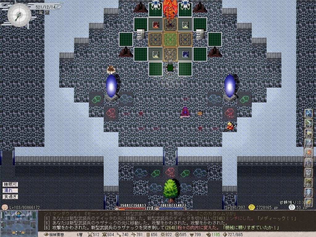 いい加減そろそろメインをちょっとは進めてもよかろうと思い向かったのですが、いままで散々ダラダラとPC&ペットを強化してきたからか、メタルヴェスダは瞬殺でした。こっちが速度を上げすぎていたのか、相手が舐めプをしていたのかはわかりませんが、何もせずに死にましたからね。まあこっちはOverdoseモードで300時間以上プレイしてるんで、それで苦戦するようならそれはそれでなんか間違ってる気もします。また、シナリオ上のボスキャラよりそこらへんのネフィアボスのほうが強かったりするのは、これはもうElonaのシステム的に仕方がないんじゃないかなあ。
