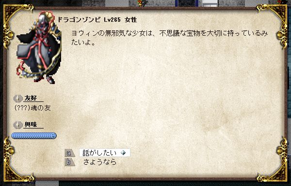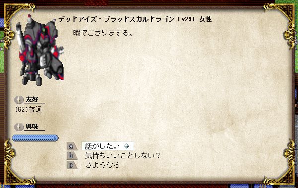 前回書いたとおり、ドラゴンゾンビ♀のマニ子ちゃんは友好度を魂の友にまで上げています。無駄に。棺に戻すと再生成されてしまうなら、棺に戻さなければよかろうなのだ!