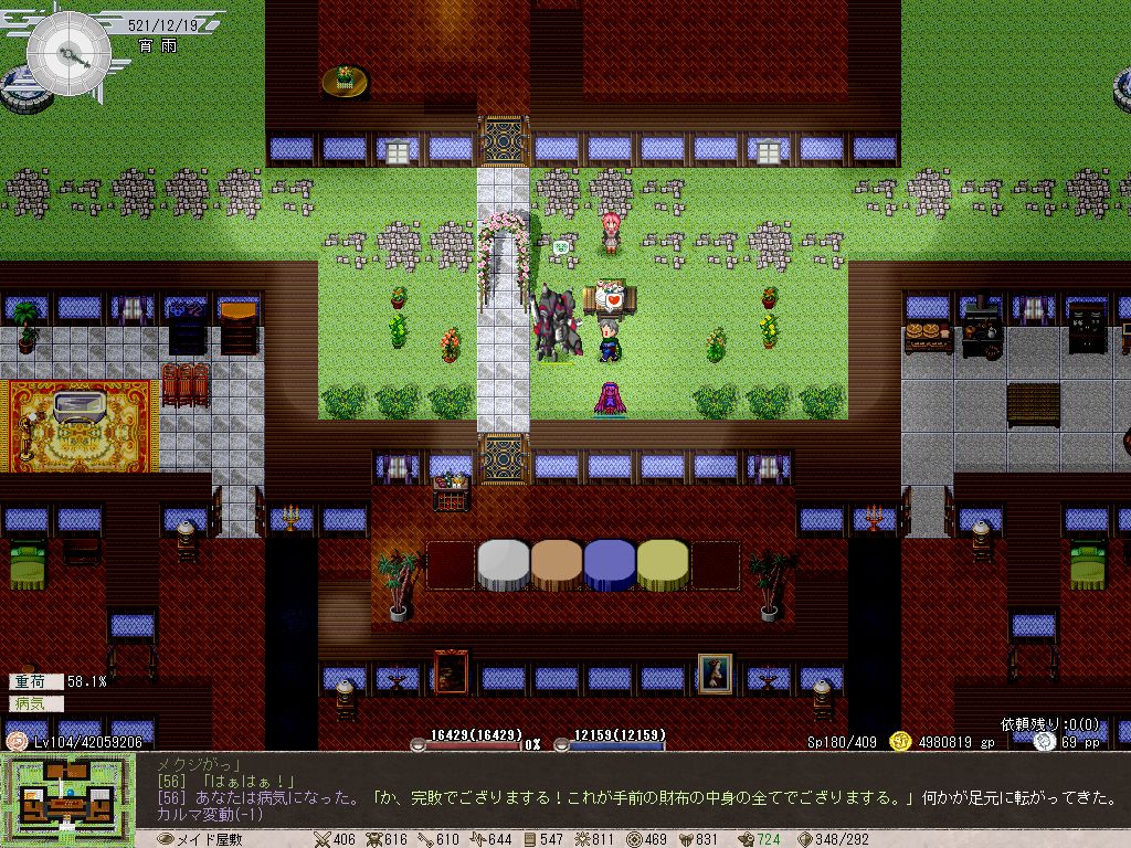 Elona Plus、気づけば先月中に新バージョンが公開されていたようですが、今回のはバランス面にかなり調整が入ってて、俺は更新せずにちょいと様子見中です。主な変更点はDV依存の回避率上昇ですが、これ敵にも適用されるとなると銃器が余計に当たらなくなるのでは…というチキンな発想が(あ、でも敵はDVガン上がりするような装備品はまず身につけてないな)。
