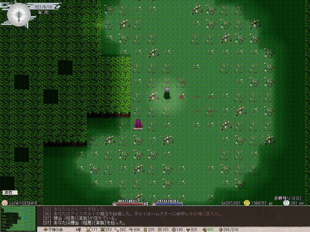 森タイプのネフィアの壁を破壊すると割と頻繁に入手できるので、とりあえず森を漁ってドングリ食ってれば生き残れるぜ!という、それなんていうCataclysm: DDAな状態に。